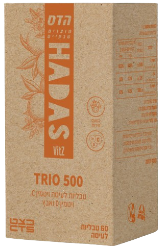 TRIO 500 | טריו 500 | טבליות לעיסה | מכיל וויטמין C ויטמין D ואבץ | מכיל 60 טבליות |