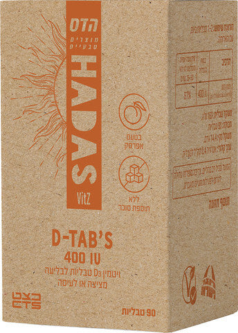 די טאבס D-TAB'S מכיל ויטמין D בצורת טבליות שניתן ללעוס או לבלוע, בטעם פירות, ללא תוספת סוכר. המוצר נועד לתמוך ברמות ויטמין D בגוף, אך אינו מהווה טיפול רפואי לבעיות בריאותיות.