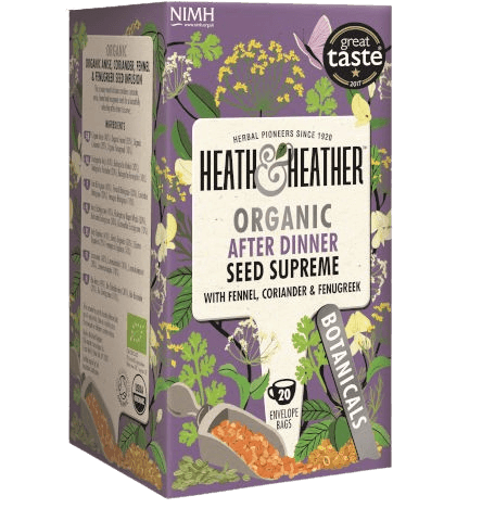 חליטת תה זרעים אורגניים | חליטת אניס אורגני, כוסברה, שומר וזרעי חילבה | 20 שקיקים | HEATH & HEATHER | ORGANIC | AFTER DINNER |