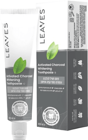 משחת שיניים מתקדמת פחם פעיל להלבנה והסרת כתמי קפה ועישון | מכיל 100 מ"ל | ליבז | Activated Charcoal Whitening Toothpaste | LEAVES