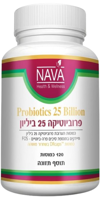 פרוביוטיקה 25 ביליון | בשחרור מושהה | מכיל 120 כמוסות | אזהרות: לשמור במקום קריר ויבש. להרחיק מהישג ידם של ילדים.