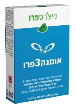 אומגה3פרו | כמוסות 1000 מ"ג שמן דגים | מכיל ויטמין E | מכיל 60 כמוסות |
