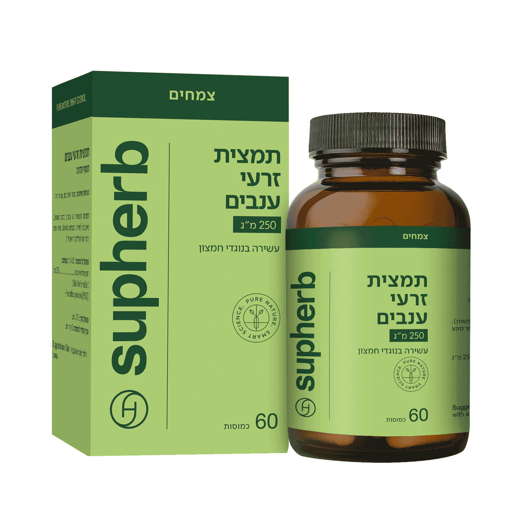 תמצית זרעי ענבים של המותג "superb" מביאה את היתרונות הבריאותיים של רכיבי זרעי הענבים בצורה נוחה של כמוסות. המוצר מבוסס על מיצוי איכותי של זרעי הענבים, המתקבל בריכוז גבוה במיוחד של הרכיבים הפעילים.