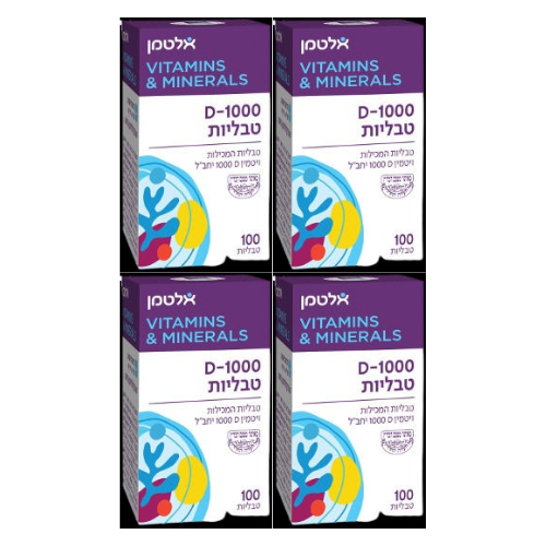 טבליות D-1000 - 100 טבליות המכילות ויטמין D 1000 יחב"ל - מבית אלטמן - אריזת רביעיה
