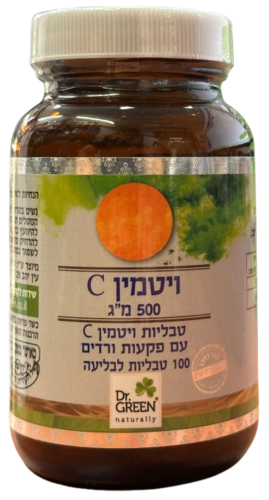 טבליות ויטמין C | עם פקעות ורדים | 500 מ"ג | מכיל 100 טבליות |