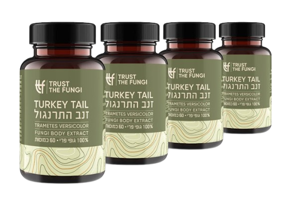 פטריית זנב התרנגול | מיצוי 100% גופי פרי | בשיטת FBE | מבצע רביעייה | מכיל 240 כמוסות |