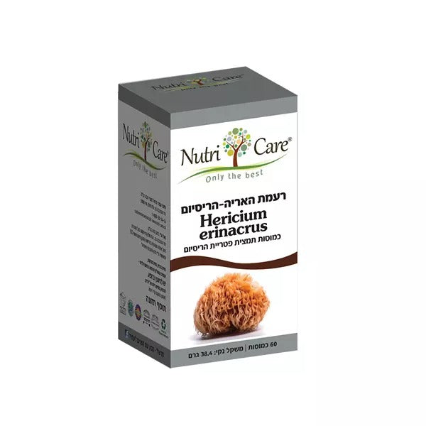 רעמת האריה היריסיום נוטריקר Nutricareרכיבים: תמצית היריסיום 50% פוליסכרידים.כמוסה צמחית (HPMC), מונעי התגיישות (סיליקון דיאוקסיד, מגנזיום סטארט) כל כמוסה מכילה 500 מ"ג של תמציתת היריסיום 50% פוליסכרידים.
